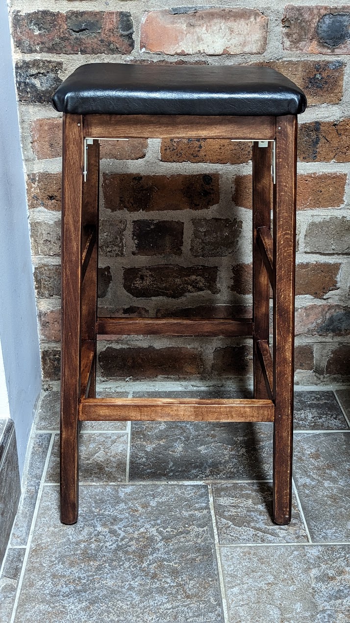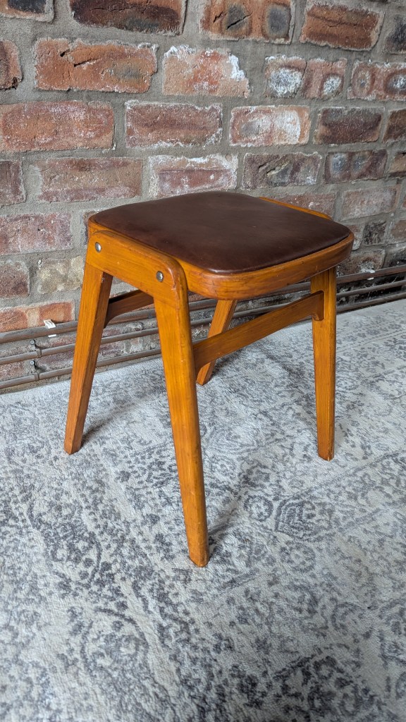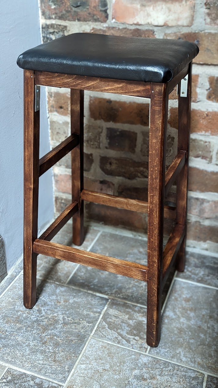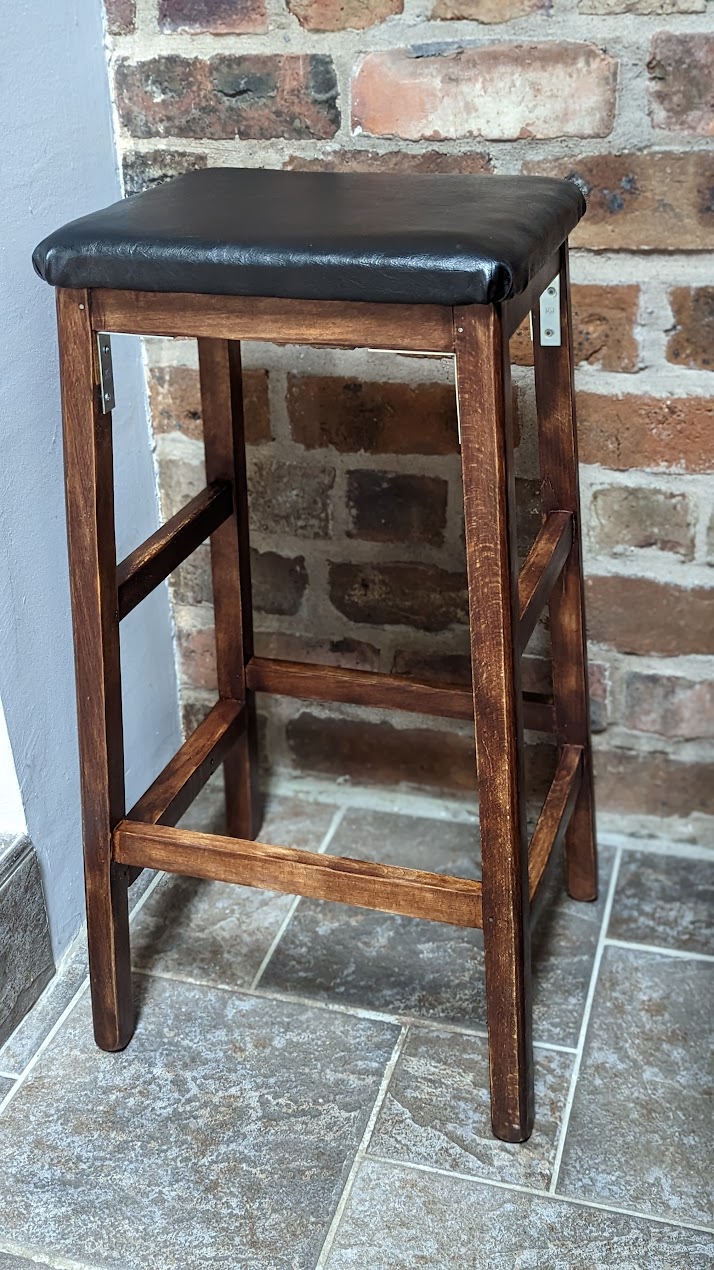 Restored Kitchen Stool with Leather Seat
