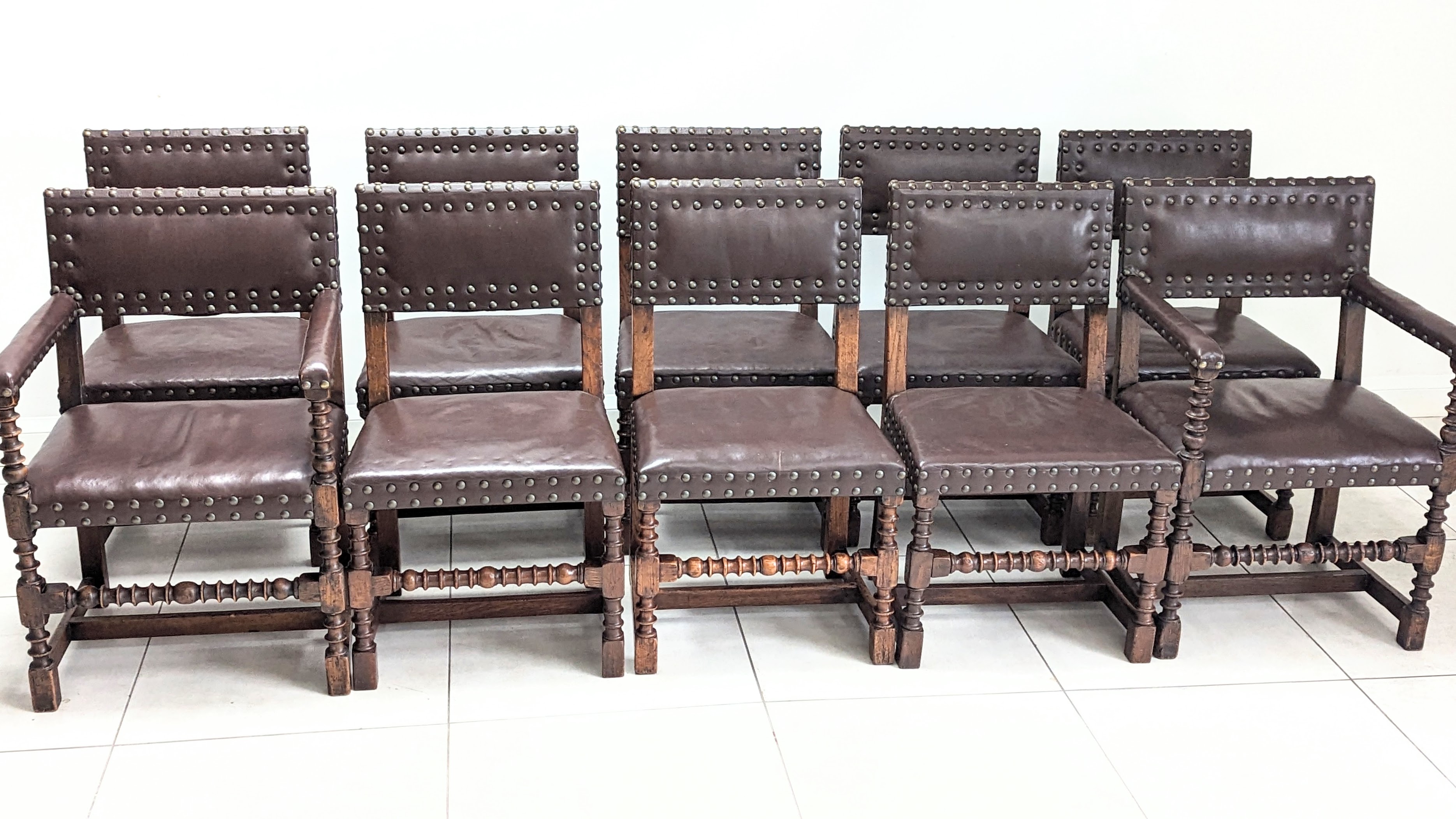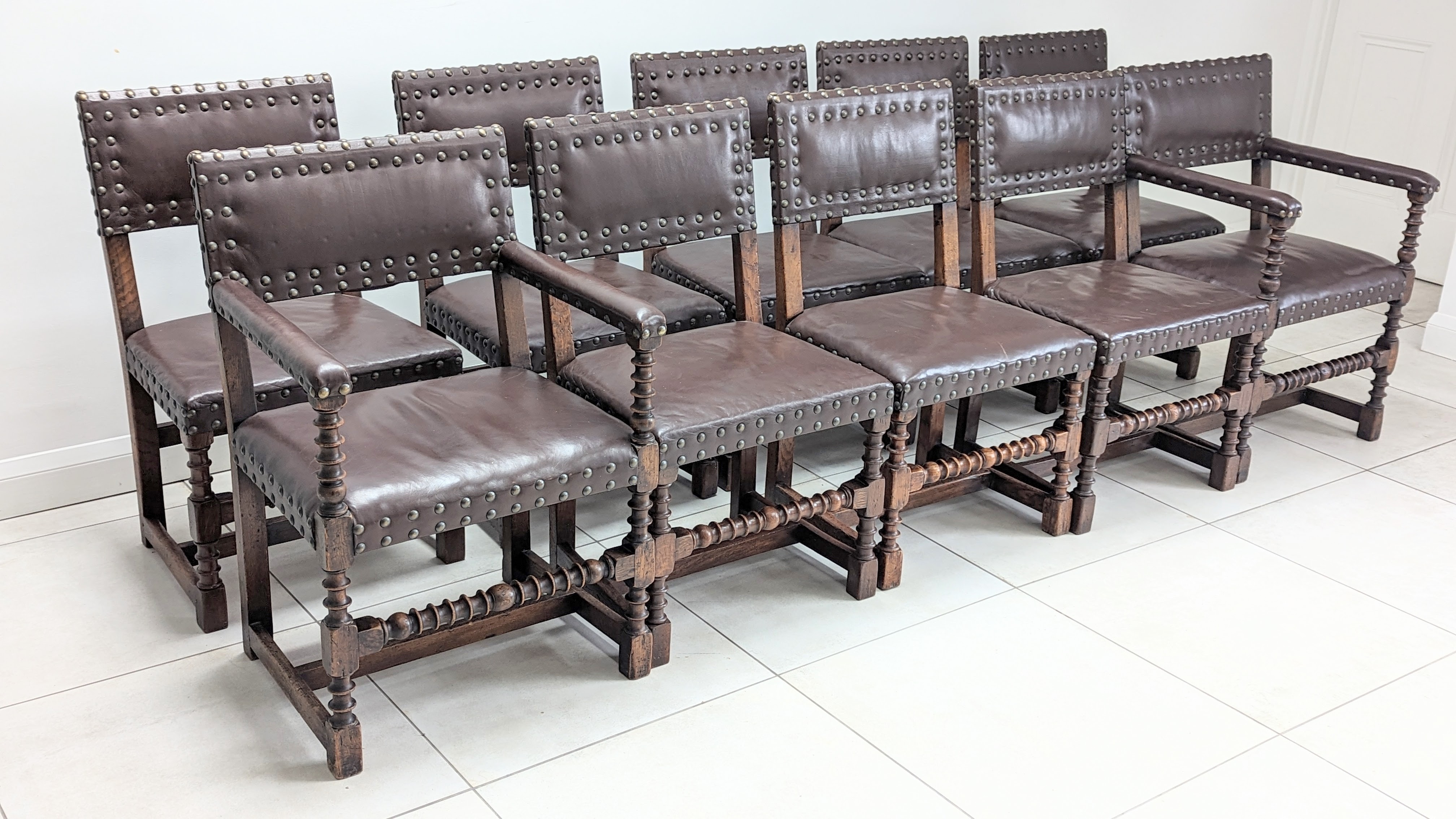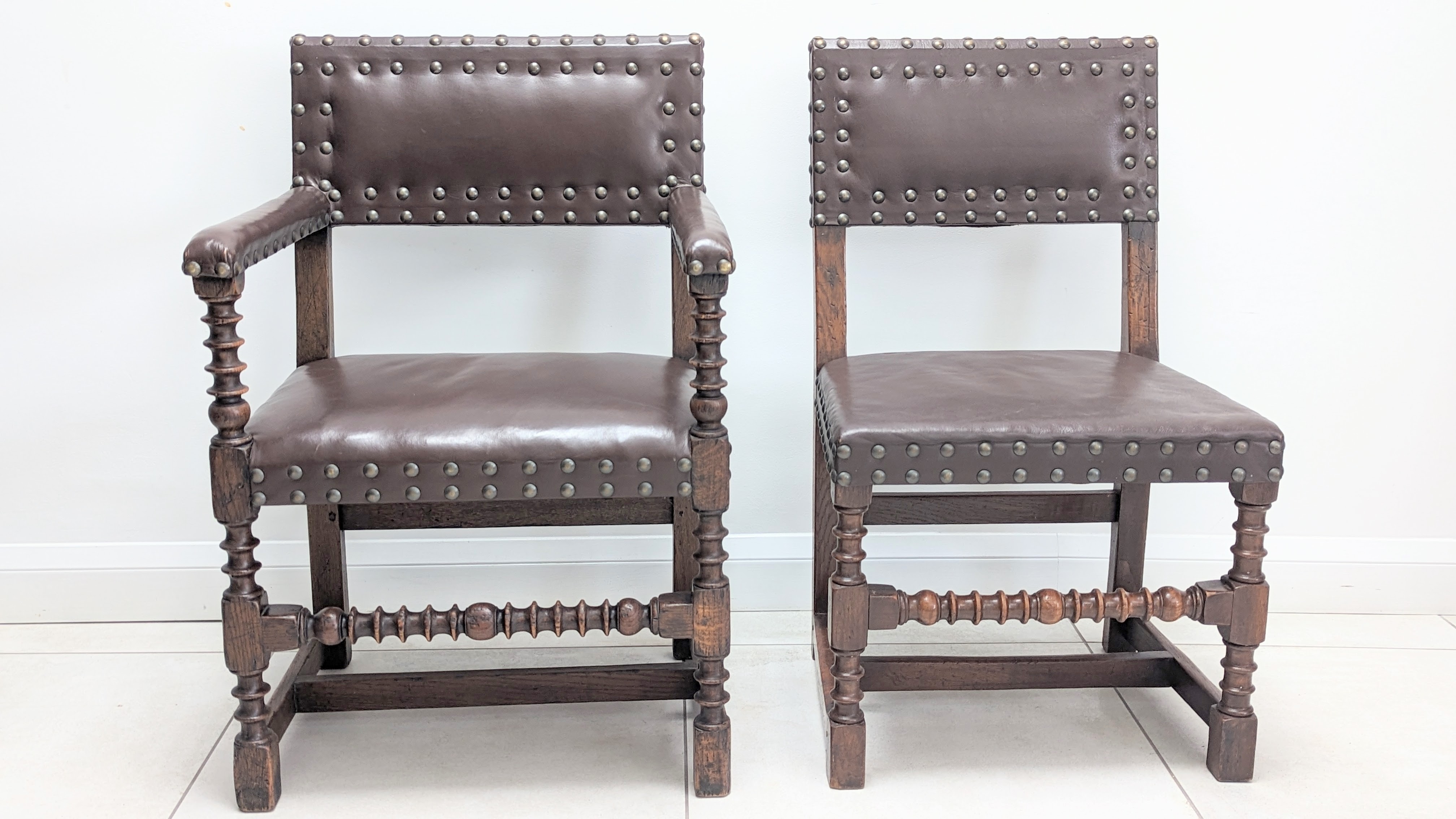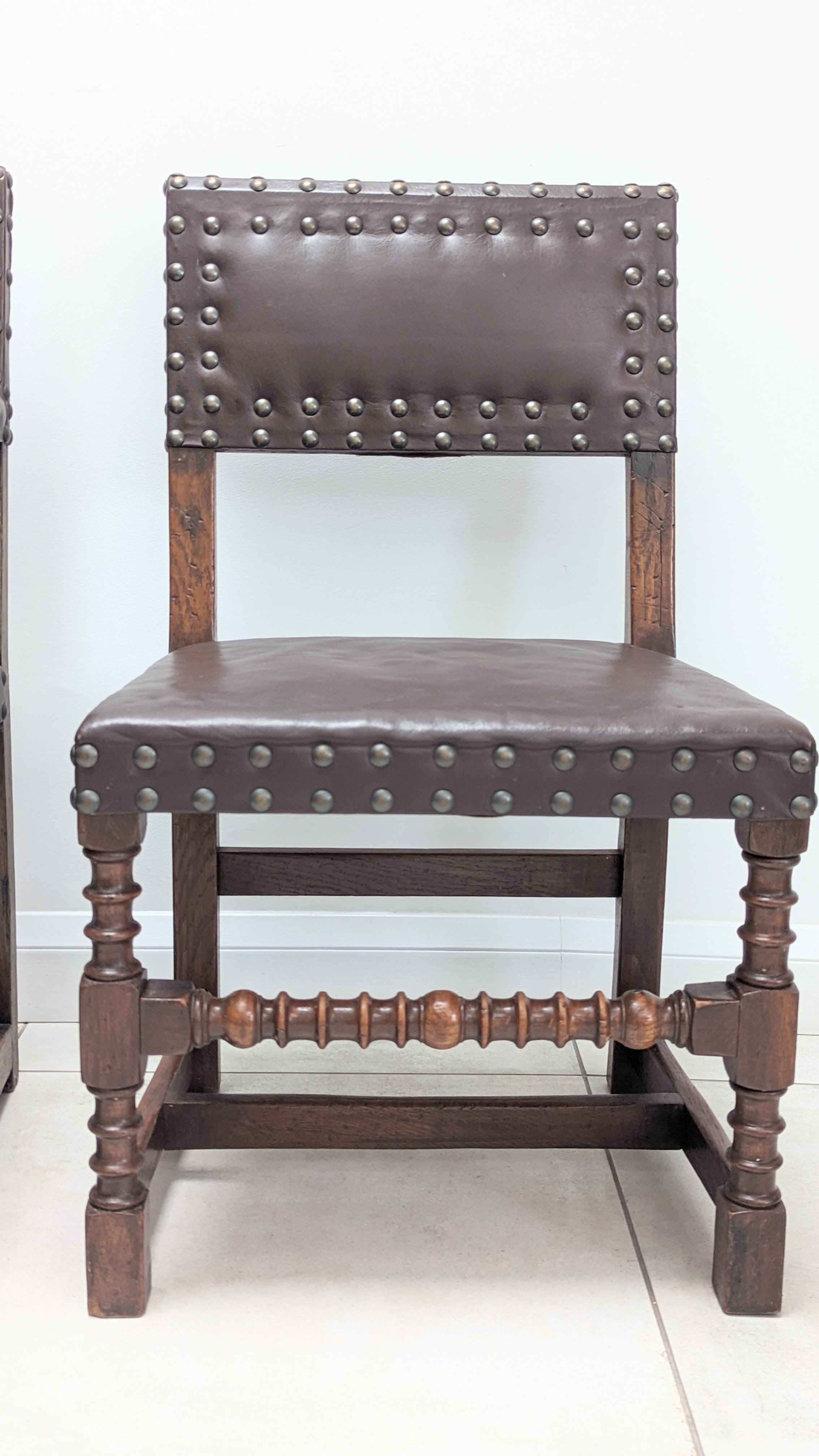 Cromwellian Leather & Oak Dining Chairs